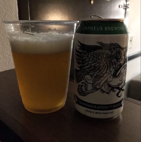 Commercial Description: Inspired by the Orphic bone tablets which explore the dichotomous nature of life and death, our Bone Tablet series reveals the many sides of the IPA. Transmigration of Souls is an irresponsibly hopped Double IPA, bursting with life from an absurd amount of aromatic hops. You’ll experience a bouquet of orange, lemon, and tropical fruit sitting on top of a clean, dry malt body.